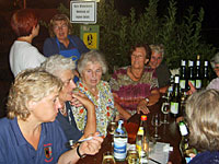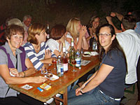 Die Freiwillige Feuerwehr als Veranstalterin hatte mit vielen Helfern alles getan, damit sich die Gäste wohlfühlen. Einheimische und Feriengäste saßen an langen Tischen hoch über dem Tal in der Fruchtscheune von Winzer Ulrich Bernhard und auch draußen. Sie beobachteten den fantastischen Sonnenuntergang. Der Wein wurde in kleinen Gläschen ausgeschenkt, die gleichzeitig als Eintrittskarten dienten. Aber man konnte natürlich auch gleich eine ganze Flasche bestellen, was bevorzugt wurde.